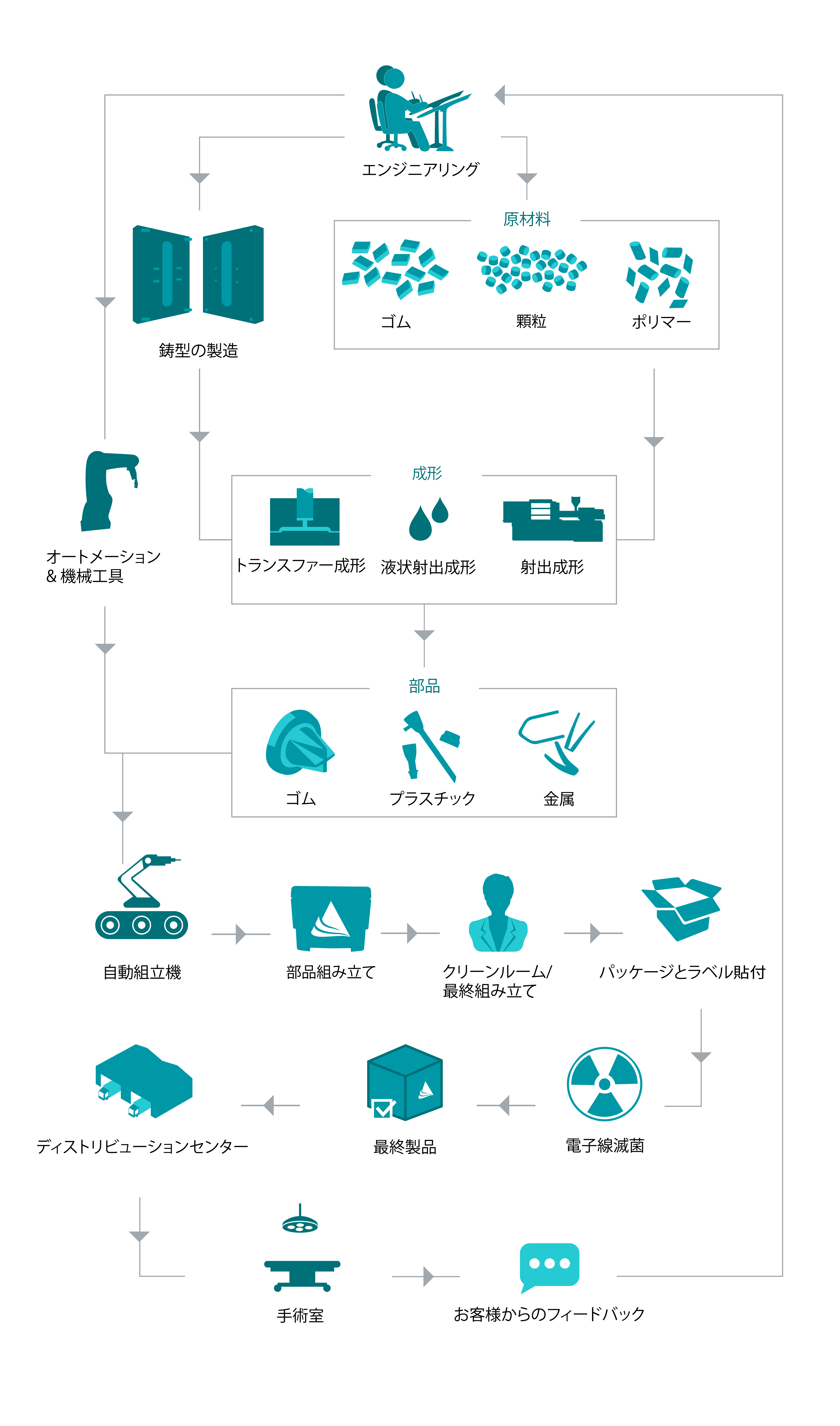 高レベルな垂直統合により、製品の改良や新技術の開発を迅速かつ効率的に行うことができ、患者様の医療にプラスの影響を与える革新的なアイデアを
